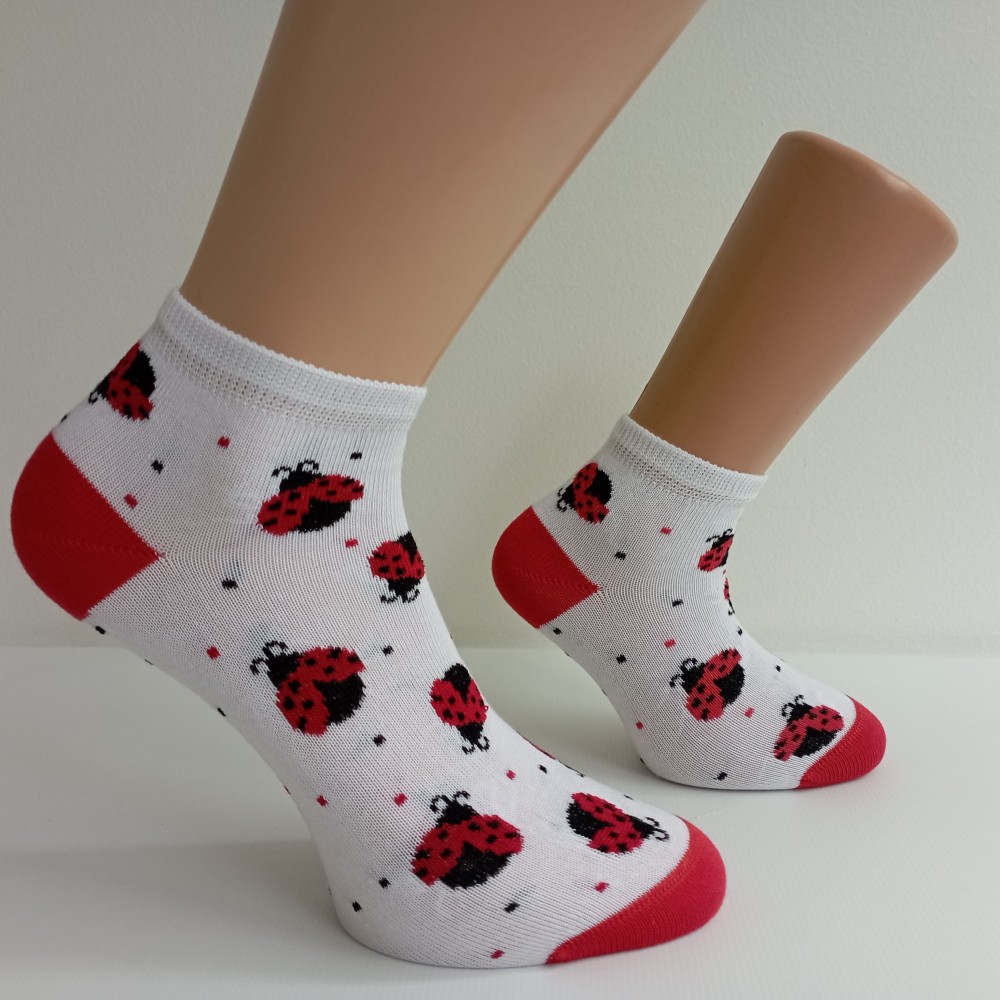 Kojenecké a dětské kotníkové ponožky od českého výrobce Trepon s motivem berušek. Originalita, pohodlí, styl. Kousek s nápaditým vzorem, který stojí za oživení dětského outfitu. Ponožky jsou vyrobeny z jemné bavlny a díky přidanému elastanu se skvěle přizpůsobí tvaru dětské nohy. Mají řetízkovanou špičku a komfortní lemy, které se nezařezávají. Špička a pata ponožek jsou zesílené.