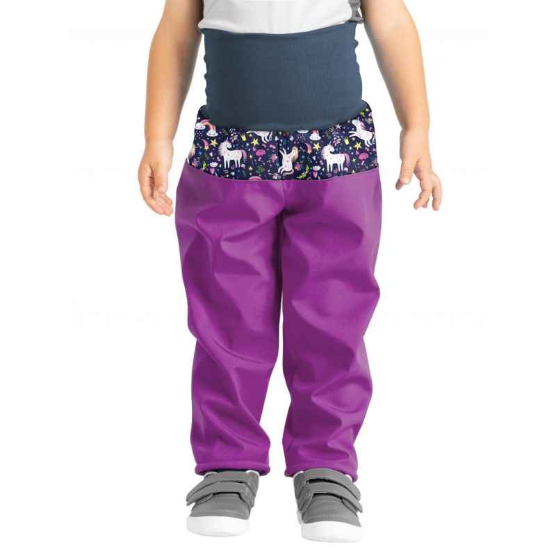 - UNUO Batolecí softshellové kalhoty s fleecem Basic, ostružinová jednorožci