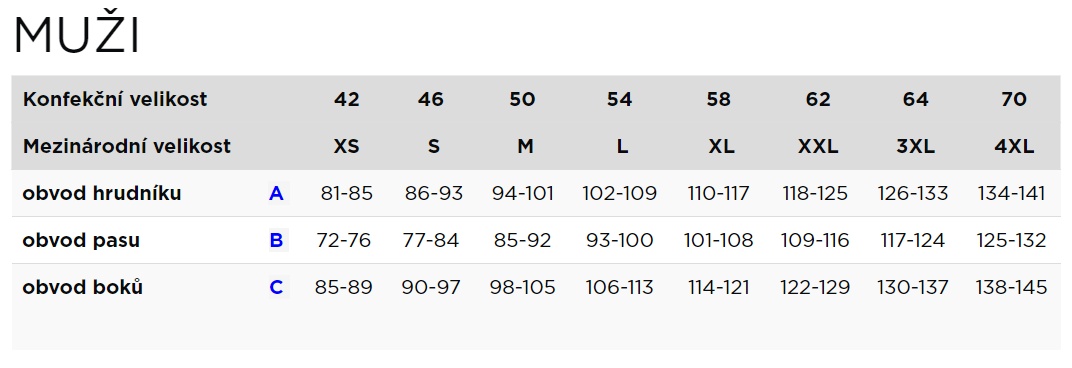 - A - obvod hrudníku: Měříme nejlépe krejčovským metrem v nejširší části hrudníku, vodorovně kolem těla. U žen to nejčastěji bývá přes bradavky, u mužů v podpaží.